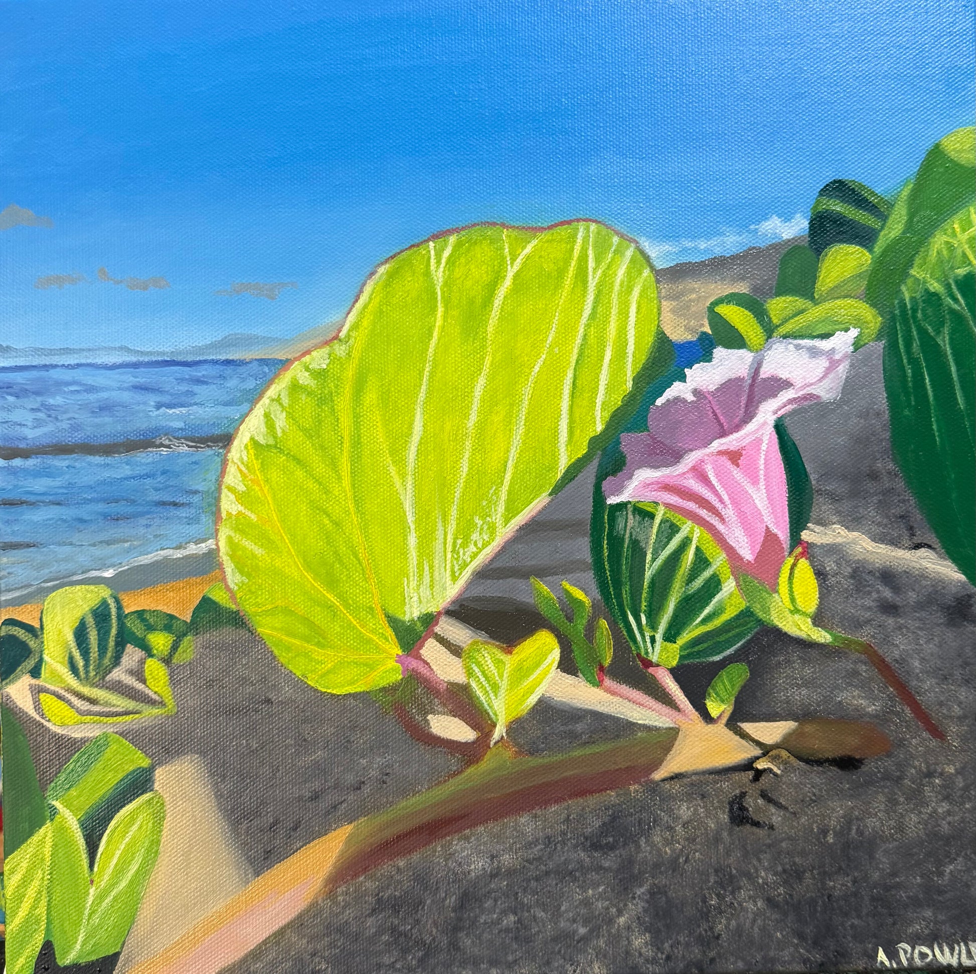 Discover the serene beauty of Maui's coastline captured in this original oil painting. This expertly rendered work showcases the iconic Bayhops landscape, where golden light dances across pristine waters and rugged cliffs meet the Pacific shore. Each brushstroke reveals the artist's deep understanding of Hawaii's natural splendor, bringing warmth and tropical tranquility into your space. A stunning investment piece for collectors and nature enthusiasts alike.